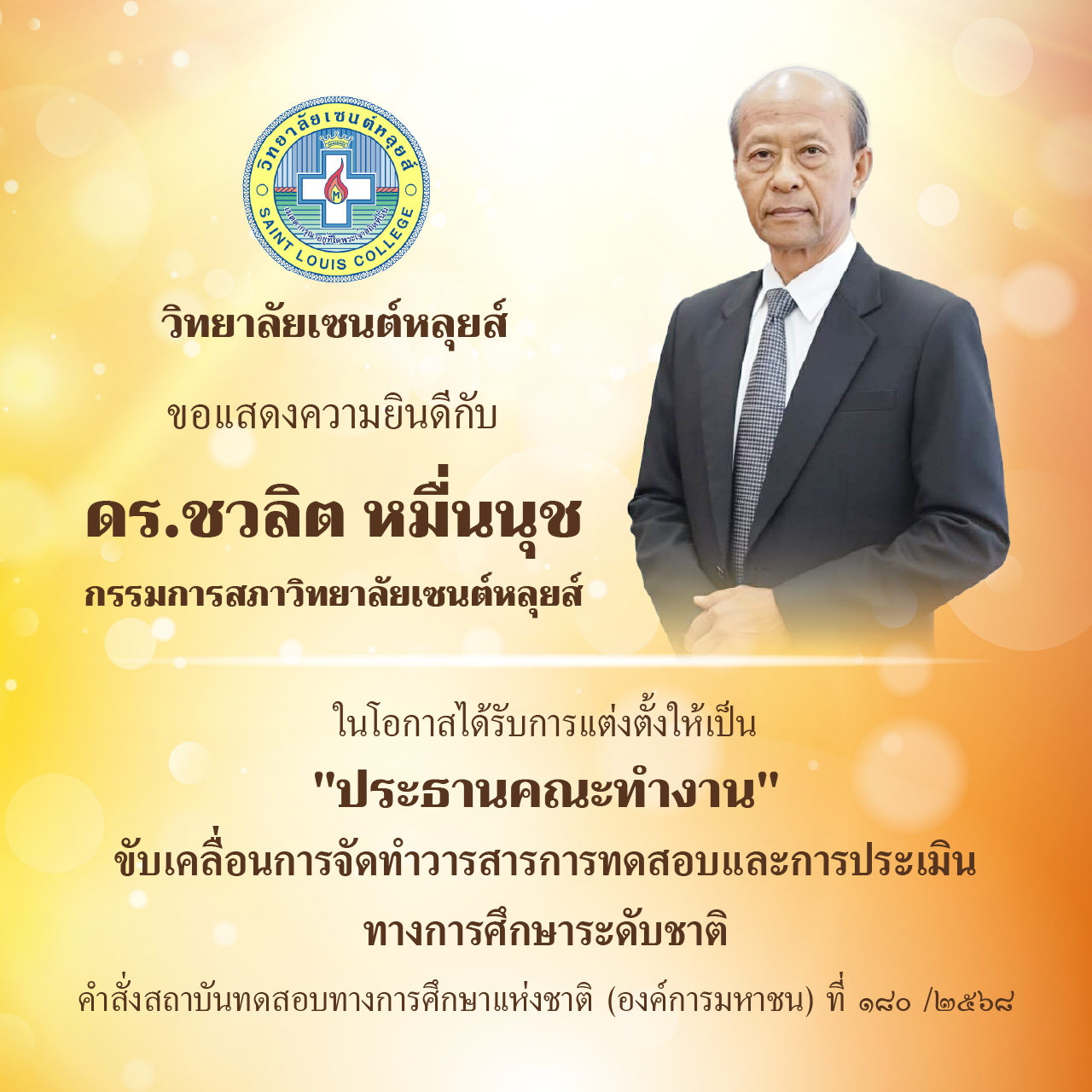 ขอแสดงความยินดีกับ ดร.ชวลิต หมื่นนุช