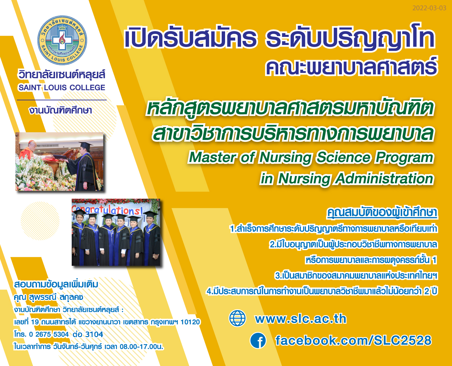 คณะพยาบาลศาสตร์ วิทยาลัยเซนต์หลุยส์ เป็นคณะหนึ่งของวิทยาลัยเซนต์หลุยส์ ซึ่งป็นสถาบันการศึกษาเอกชนในสังกัดมิสซังโรมันคาทอลิก โดยมีปรัชญาพื้นฐานคือ “เมตตากรุณาอยู่ที่ใด พระเจ้าสถิตที่นั่น” วิทยาลัยมีความมุ่งมั่นที่จะดำเนินตามหลักธรรมแห่งพระเยซูเจ้าในการรับใช้เพื่อนมนุษย์ โดยการผลิตบัณฑิตที่มีคุณภาพ มีความรู้และมีความชำนาญในศาสตร์เฉพาะสาขา รวมทั้งรอบรู้ในศาสตร์อื่นๆ ที่เกี่ยวข้อง สามารถประกอบวิชาชีพด้วยความรักและมีเมตตาธรรมเป็นพื้นฐาน ยอมรับในศักดิ์ศรีของบุคคล เป็นผู้ใฝ่รู้ รักการศึกษาค้นคว้า และเป็นผู้นำในการพัฒนาตนเอง วิชาชีพและสังคมอย่างต่อเนื่อง คณะพยาบาลศาสตร์ได้เปิดดำเนินการสอนนักศึกษาหลักสูตรพยาบาลศาสตรบัณฑิต เมื่อวันที่ 5 สิงหาคม ปีการศึกษา 2528