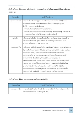คณะกายภาพบําบด 1) บรการวชาการคลนกคดกรองและปองกนการลมในผสงอาย ในโครงการ“การสรางเสรมสขภาพ