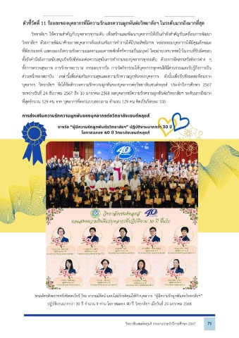 ตวชวดท 11 รอยละของบคลากรทมความรกและความผกพนตอวทยาลยฯ ในระดบมากถงมากทสด