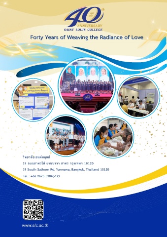 Forty Years of Weaving the Radiance of Love Forty Years of Weaving the Radiance of Love ิ ั วทยาลยเซนตหลยส ุ 19 ถนนสาทรใต ยานนาวา สาทร กรงเทพฯ 10120 ุ 19 South Sathorn Rd. Yannawa, Bangkok, Thailand 10120 Tel : +66 2675 5304(-12) www.slc.ac.th