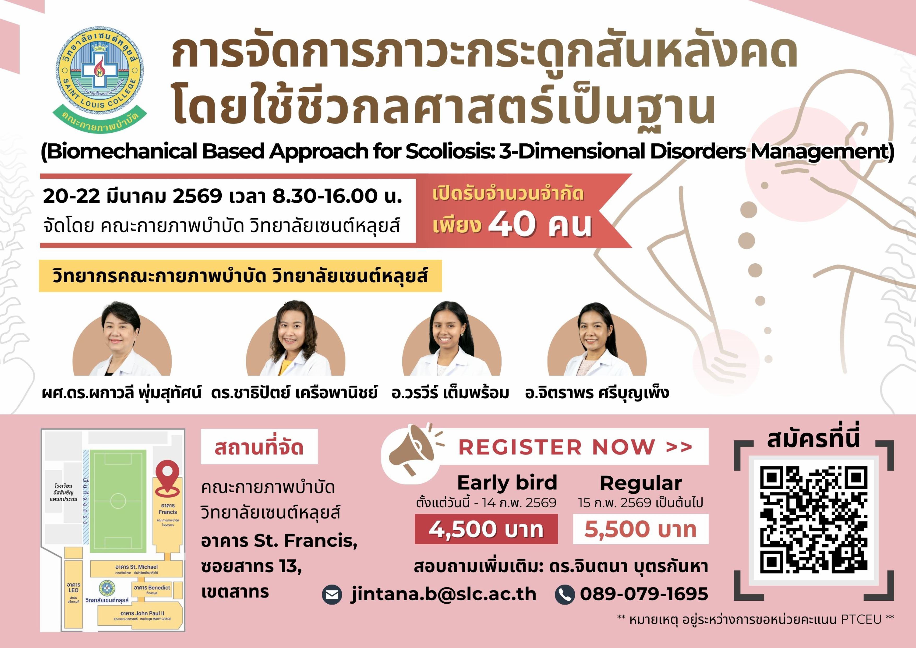 โครงการอบรมเชิงปฏิบัติการ “การจัดการภาวะกระดูกสันหลังคดโดยใช้ชีวกลศาสตร์เป็นฐาน (Biomechanical Based Approach for Scoliosis: 3-Dimensional Disorders Management)”